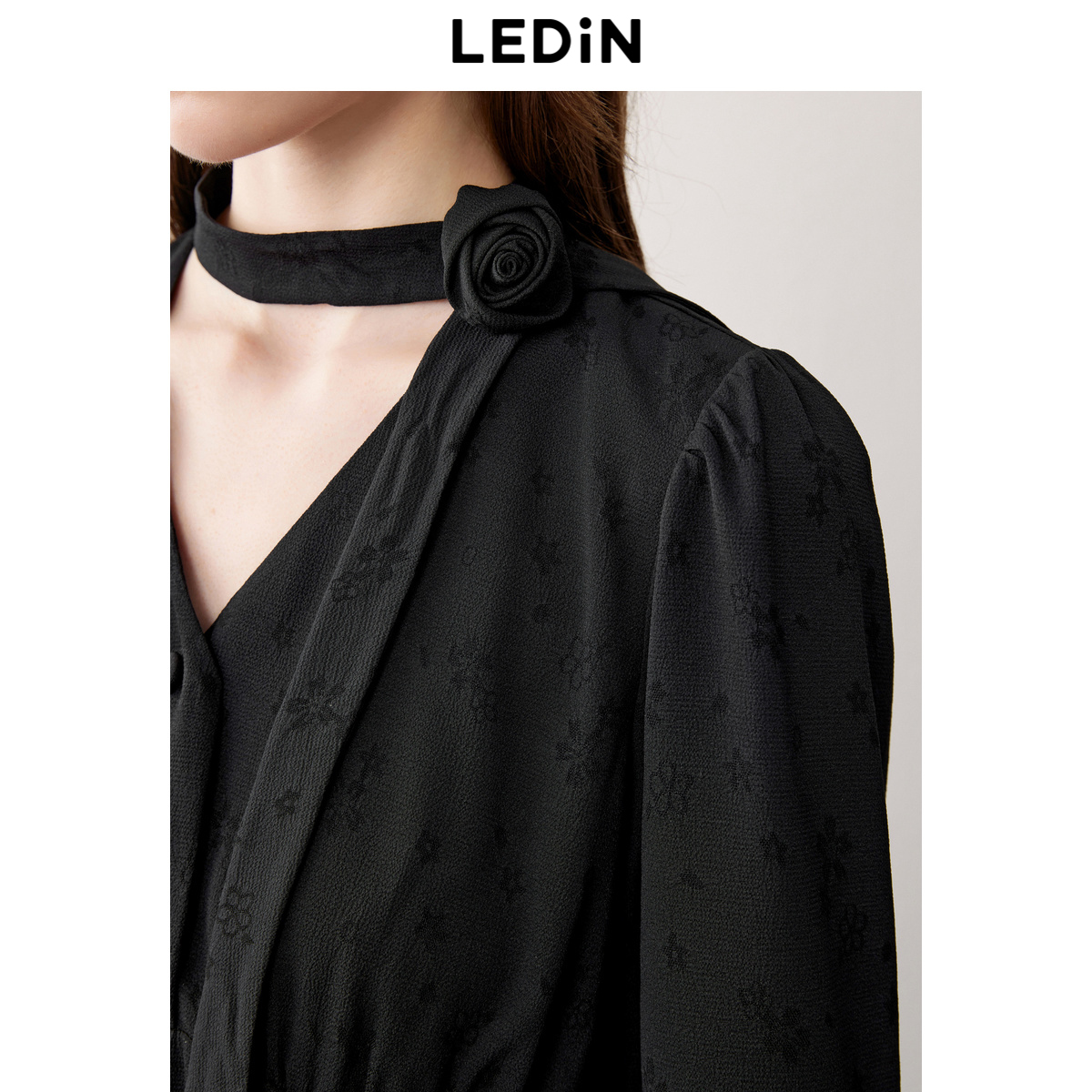 衬衫 BANANA 印花雪纺连衣裙女系带灯笼袖 新款 短裙 BABY2025年冬季
