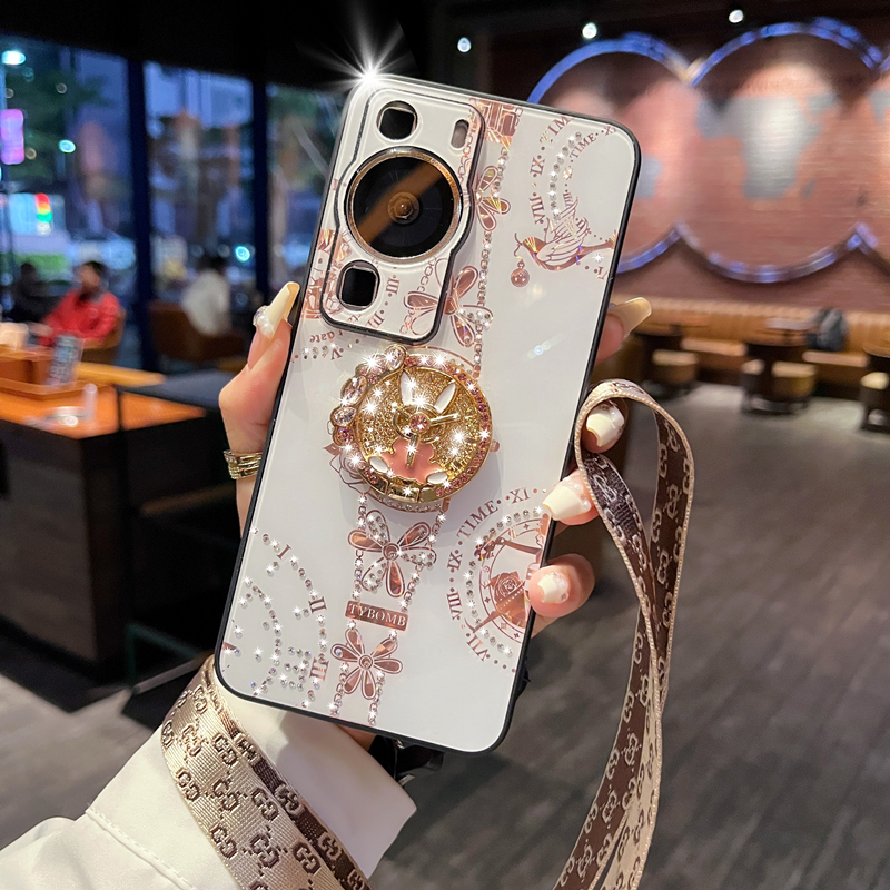 适用于华为pura70pro手机壳新款 带支架挂绳p70网红轻奢ins风情侣女 P70ultra高级感镜头全包防摔保护套p70por