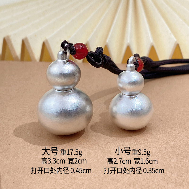 999足银葫芦吊坠男纯银项链女空心可打开挂坠银饰品情侣挂件礼物.