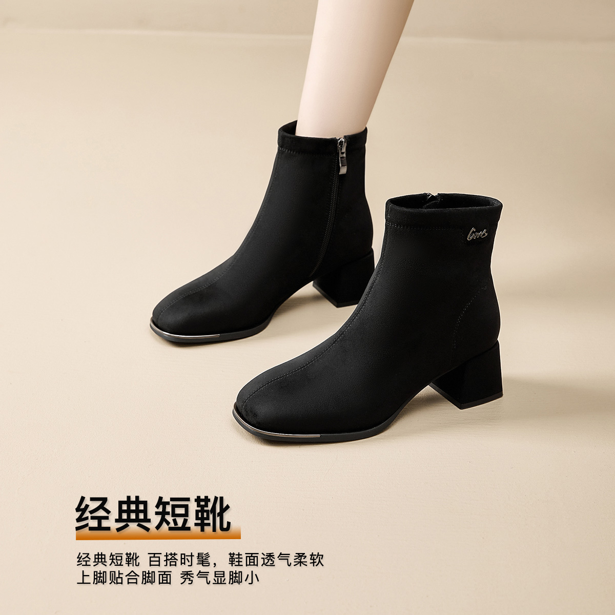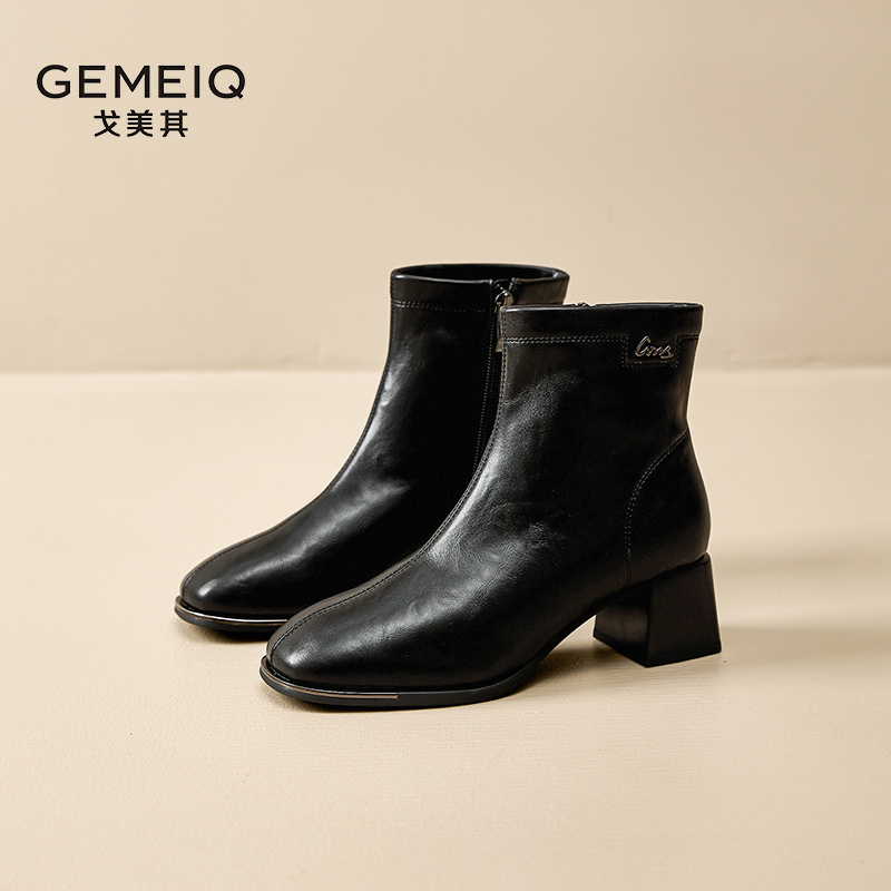 小踝靴马丁靴女款 加绒瘦瘦靴气质法式 春季 戈美其高跟短靴2025新款