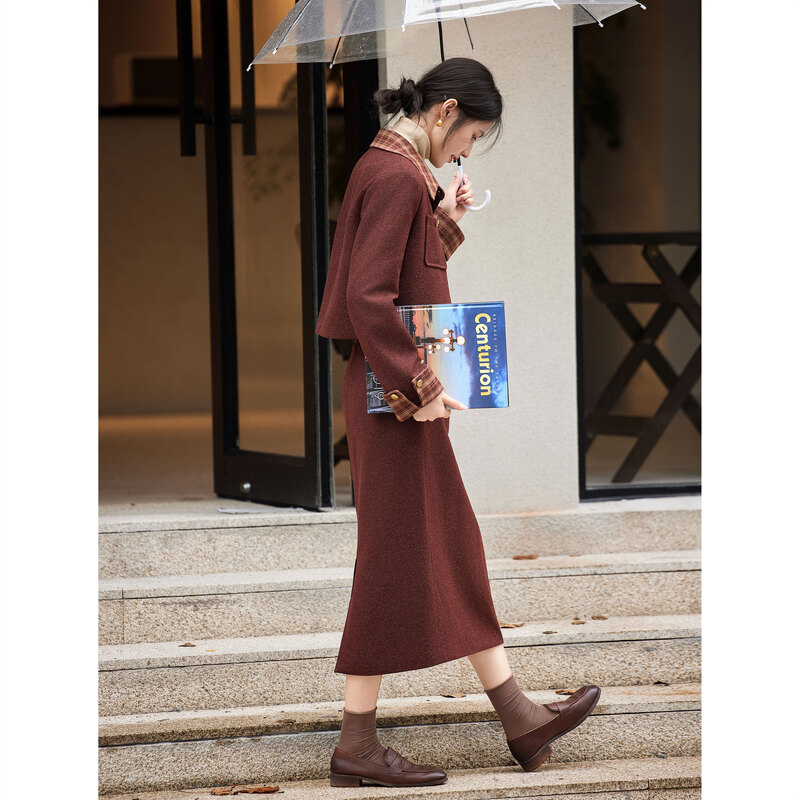 女淑女温柔街头通勤纯色半裙两件套 2024年新款 时尚 气质套装