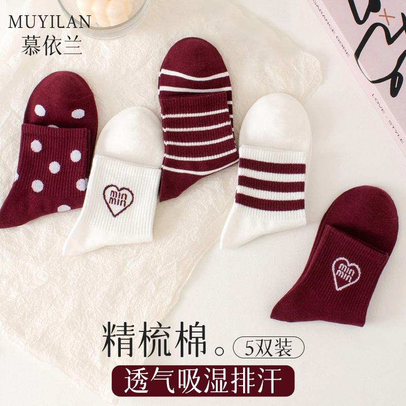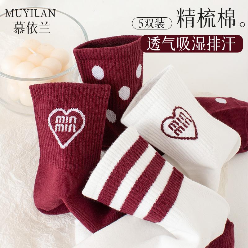 时尚 爆款 网红潮春秋短袜 2024新款 安可拉红袜子女中筒袜棉春秋季