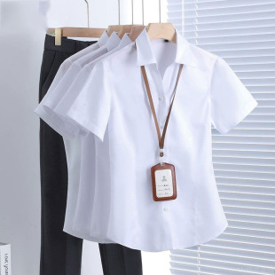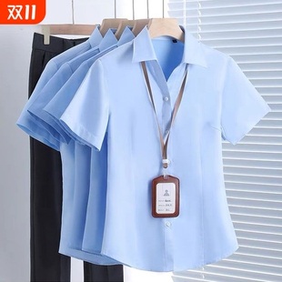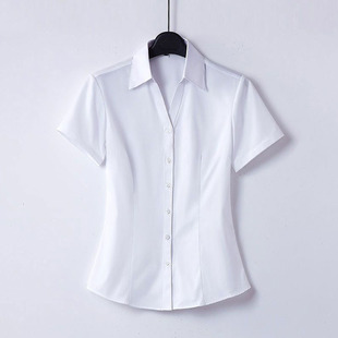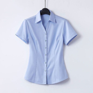 打底衫 短袖 新款 蓝衬衫 工装 职业装 内搭大码 白色工作服衬衣 女春夏季