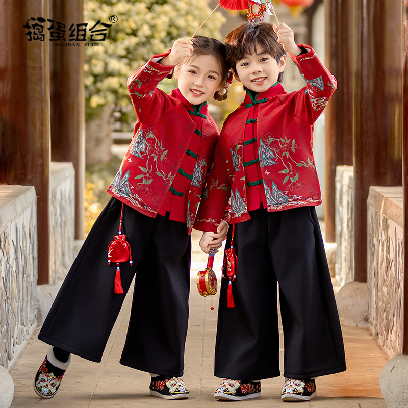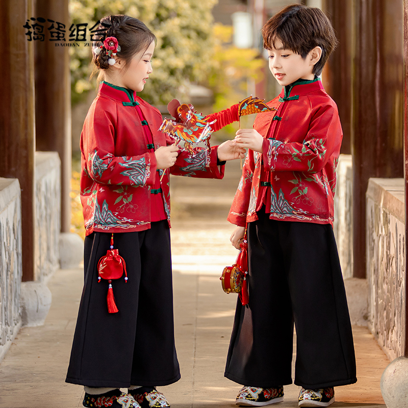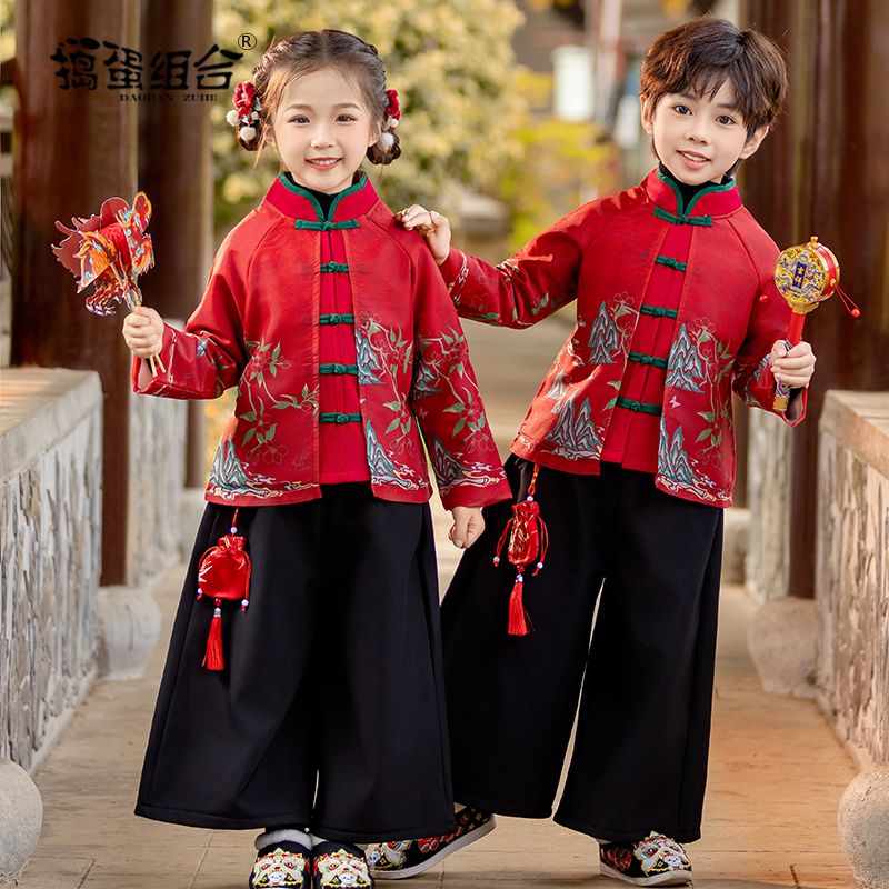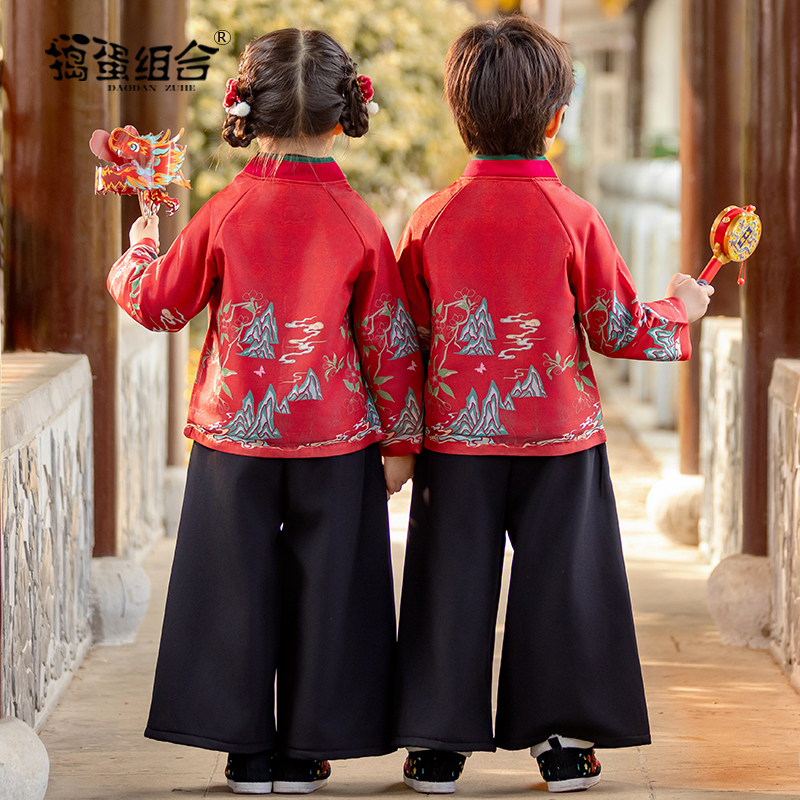 男童汉服新中式 女童加绒拜年服民族演出服 小少爷秋冬国风儿童唐装
