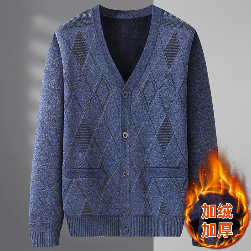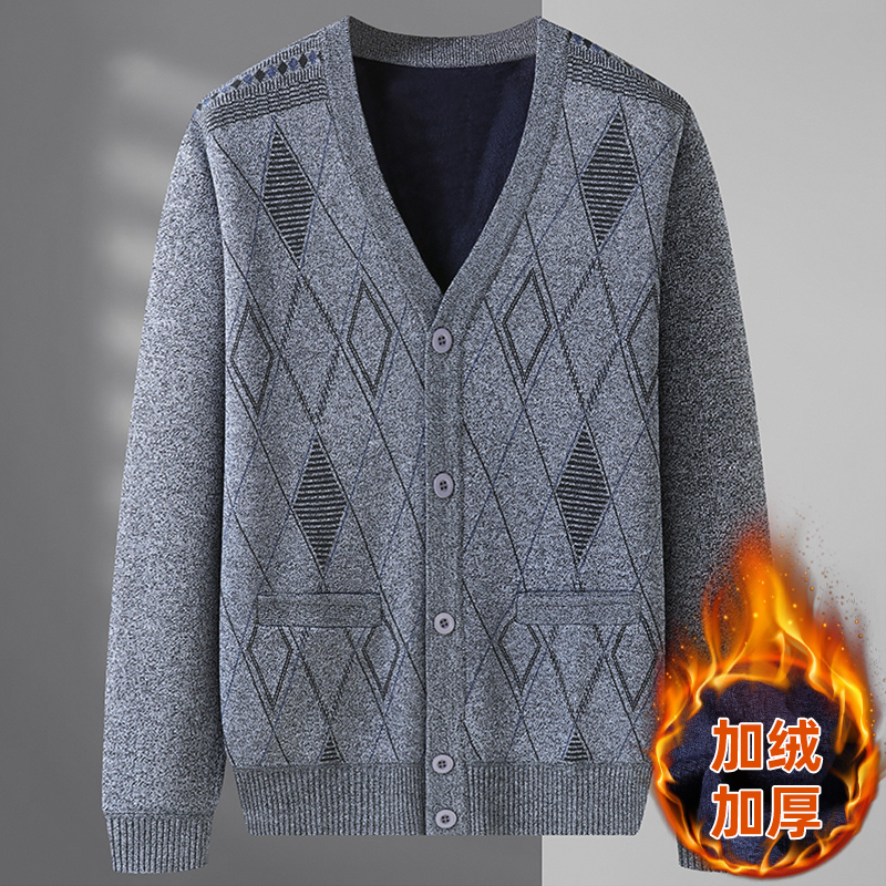 爷爷男士 中老年人加绒开衫 爸爸秋冬装 针织衫 加厚保暖外套 毛衣秋装