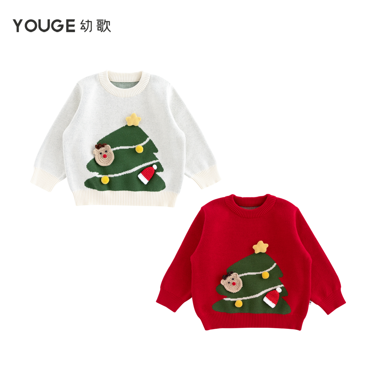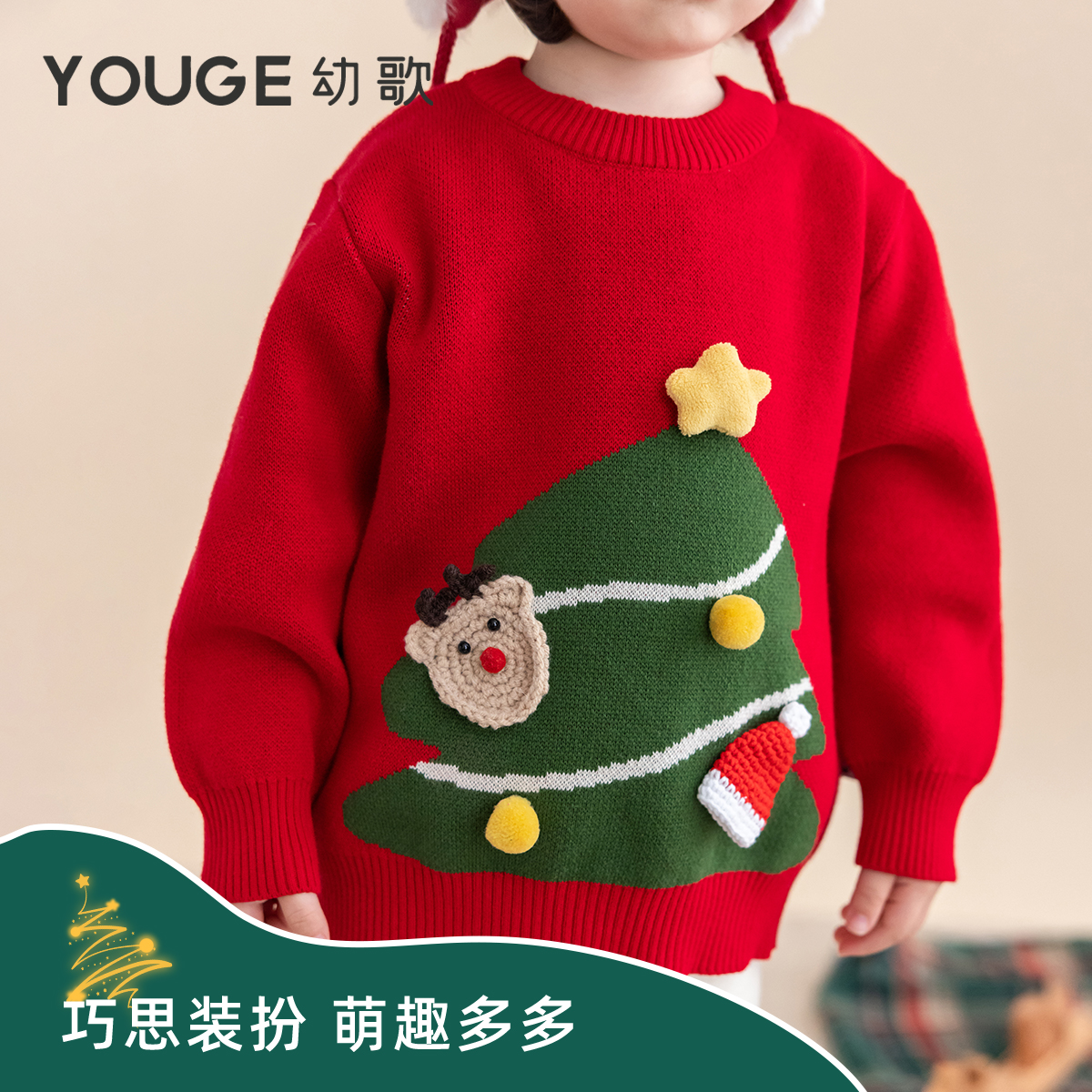圣诞节圆领弹柔暖亲肤舒适休闲纯棉毛衣 新款 YOUGE幼歌 婴幼儿冬季