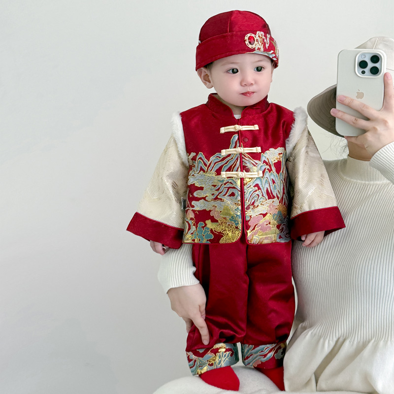 新年服抓周一岁 周岁礼服儿童唐装 婴儿秋冬衣服男宝宝分体套装 中式