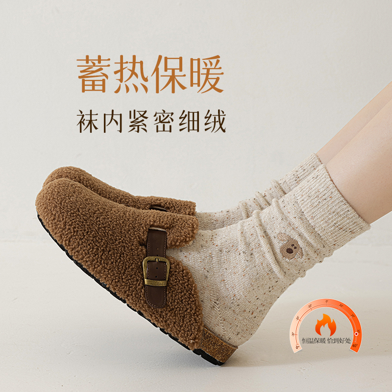 羊毛袜子女中筒秋冬季 加绒加厚保暖羊绒袜冬天可爱刺绣女士堆堆袜
