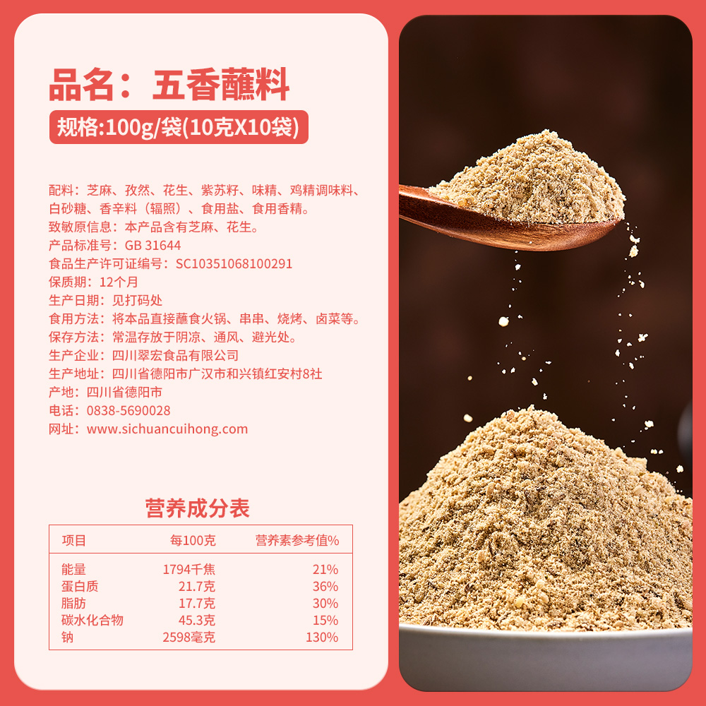 翠宏香辣蘸料100g四川烧烤火锅烤肉蘸料特辣特香干辣椒面干碟家用