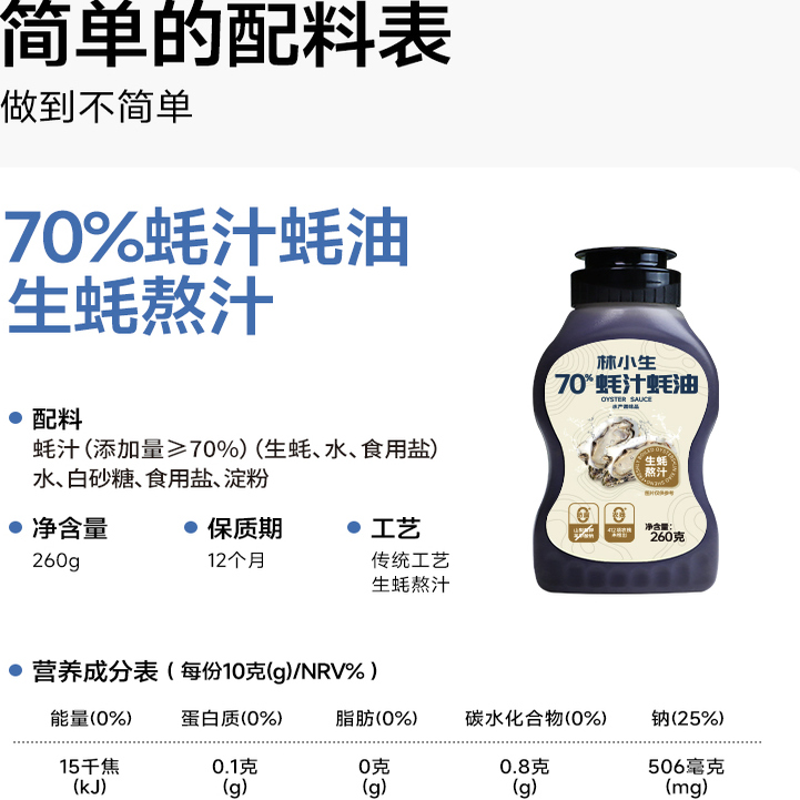 林小生100%蚝汁蚝油0添加防腐家用零纯蚝油挤挤装 烧菜全家福套餐