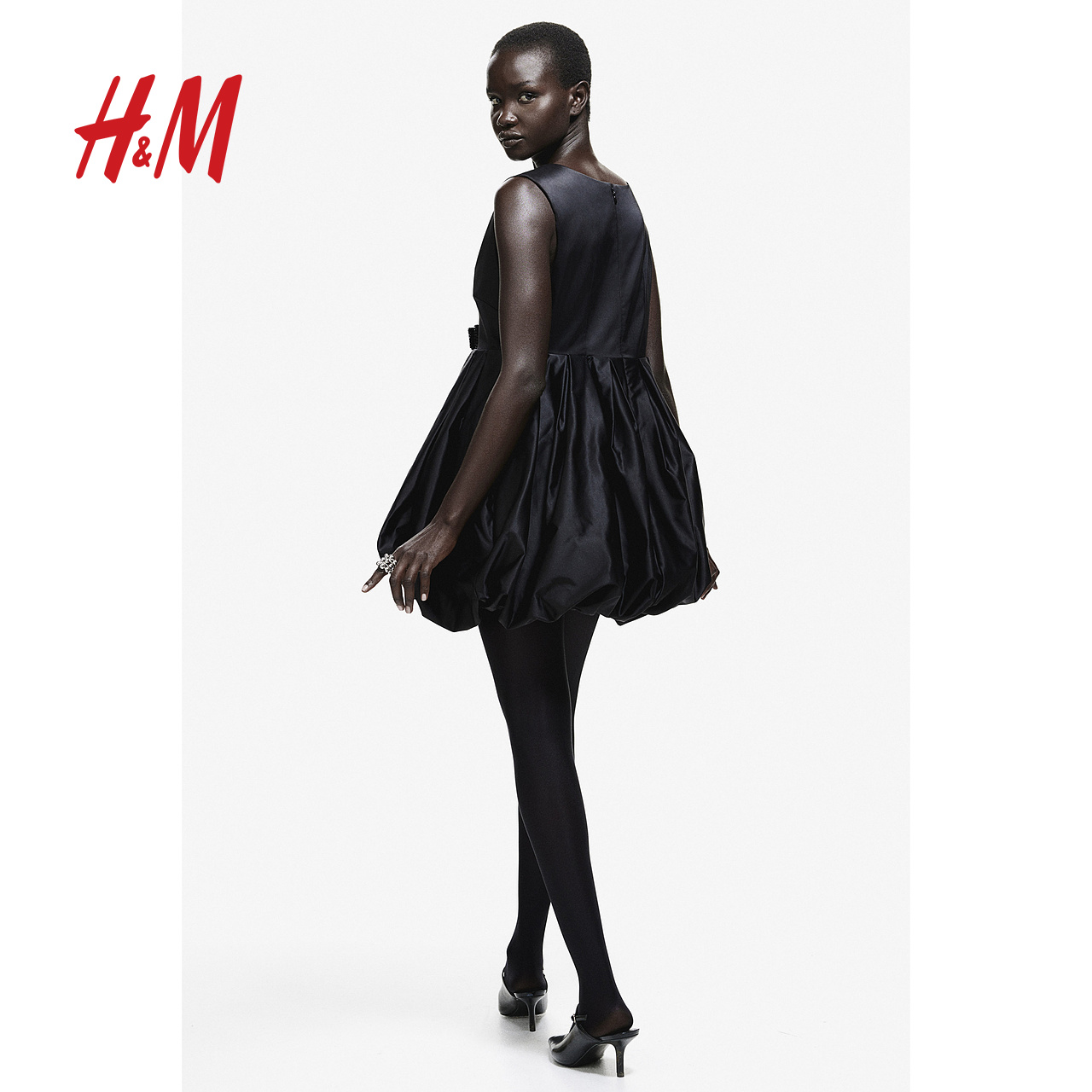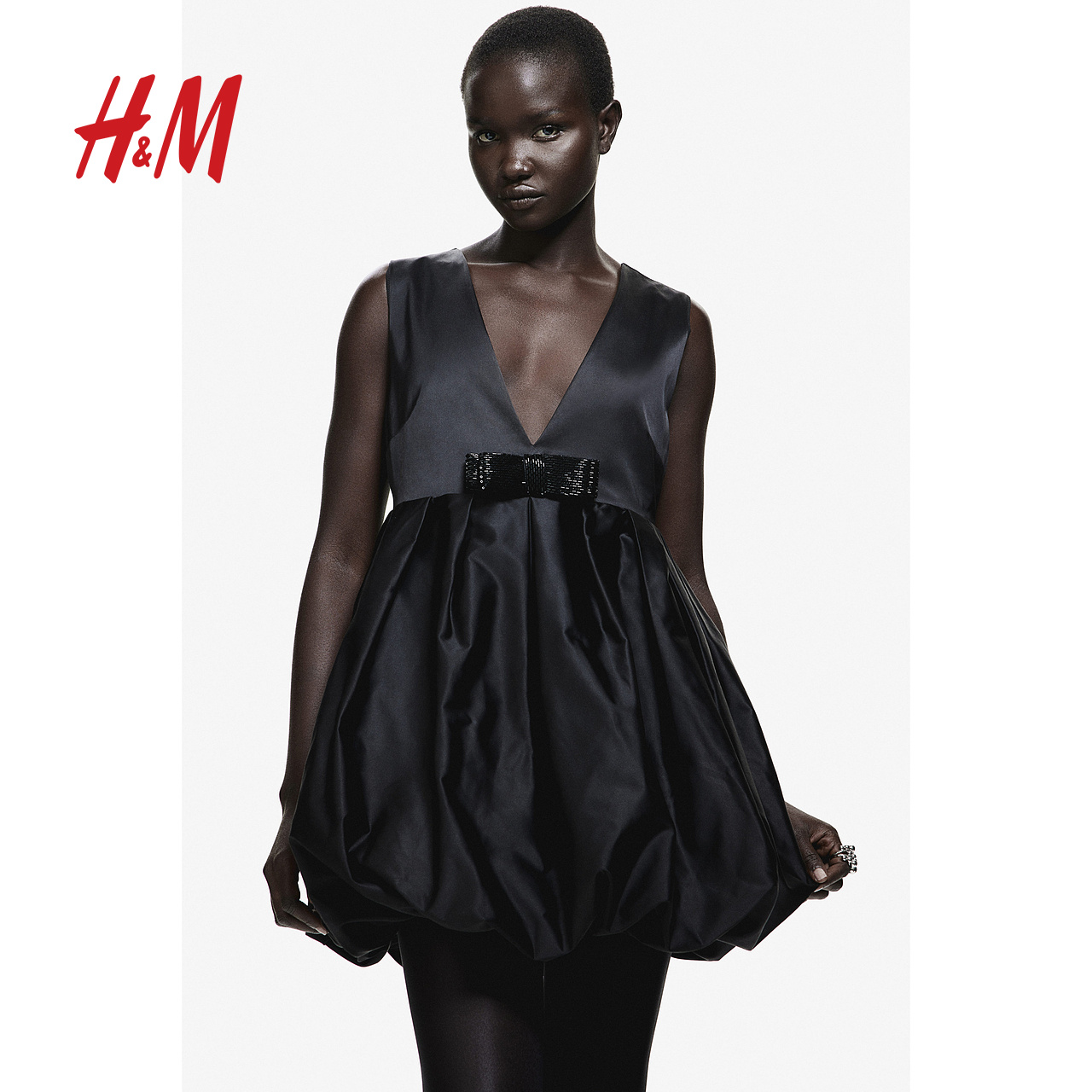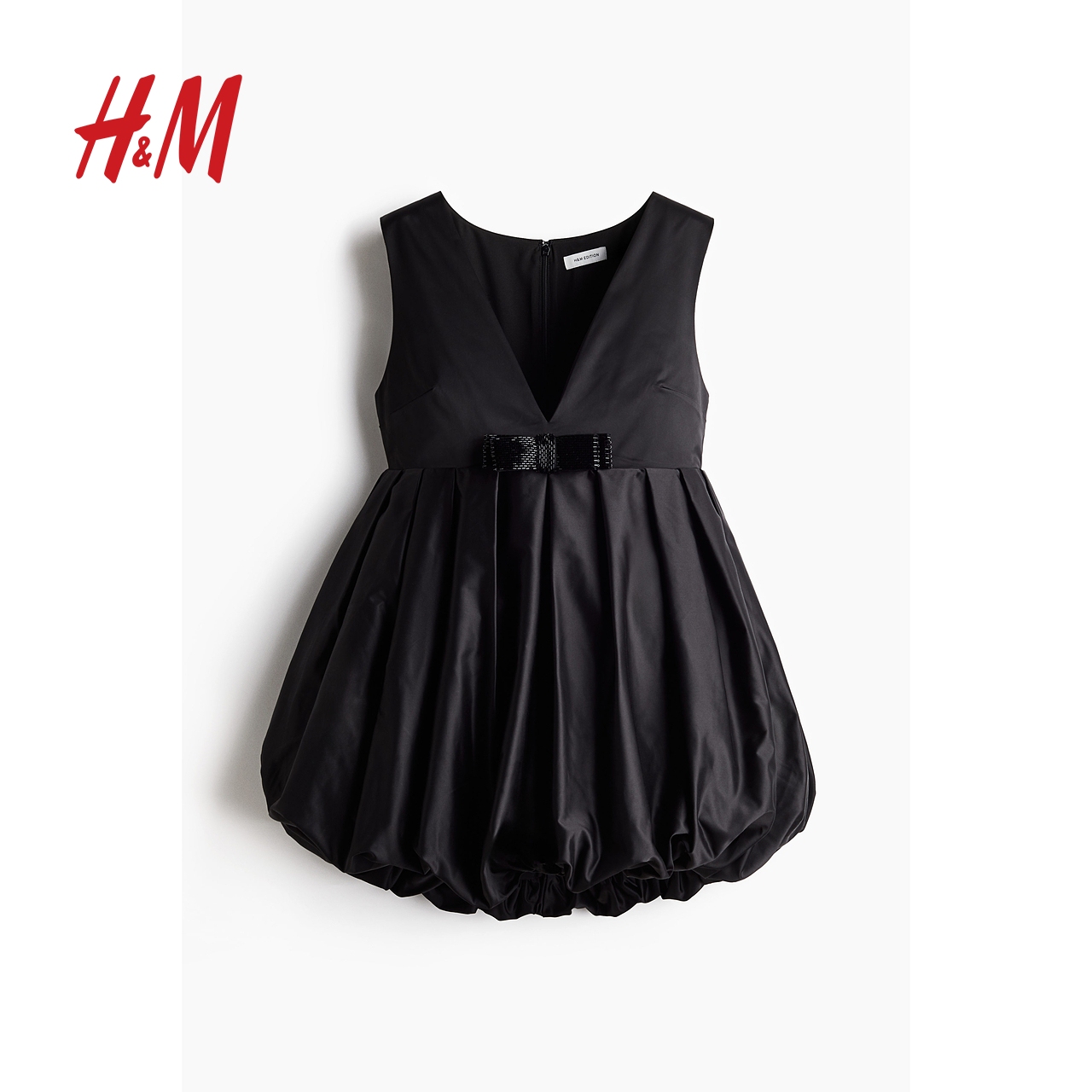 锻质泡泡下摆礼服party小礼裙1260286 v领无袖 HM女装 连衣裙秋季