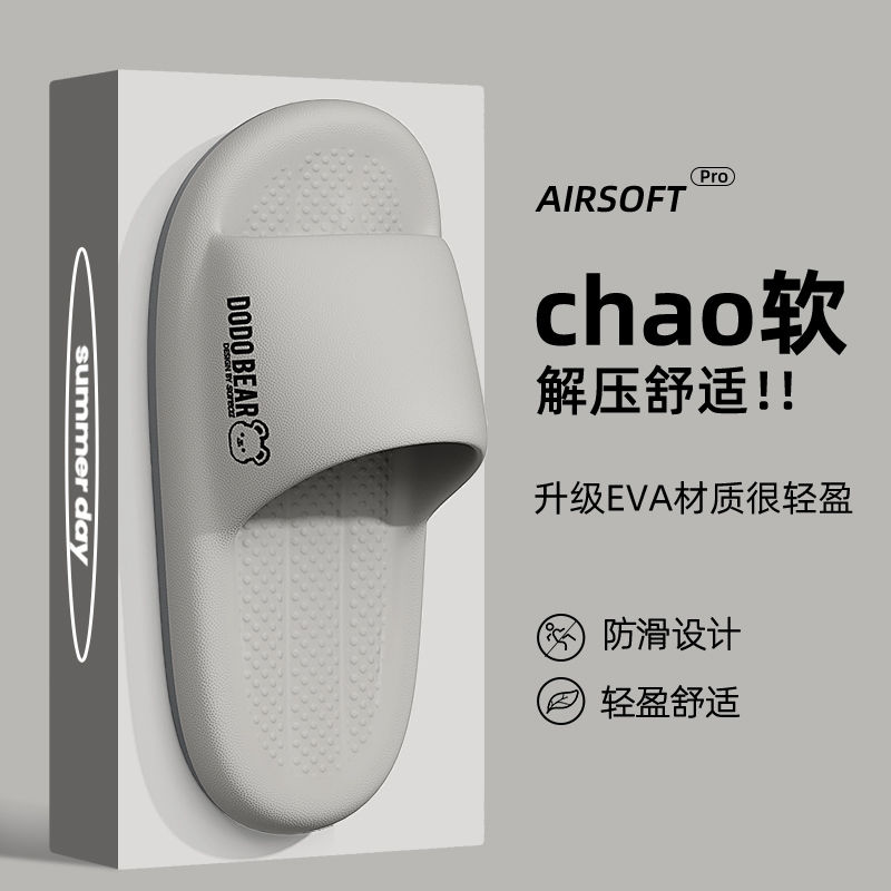 男式 踩屎感拖鞋 室内家居洗澡女士防滑运动厚底外穿凉拖鞋 夏季 男士