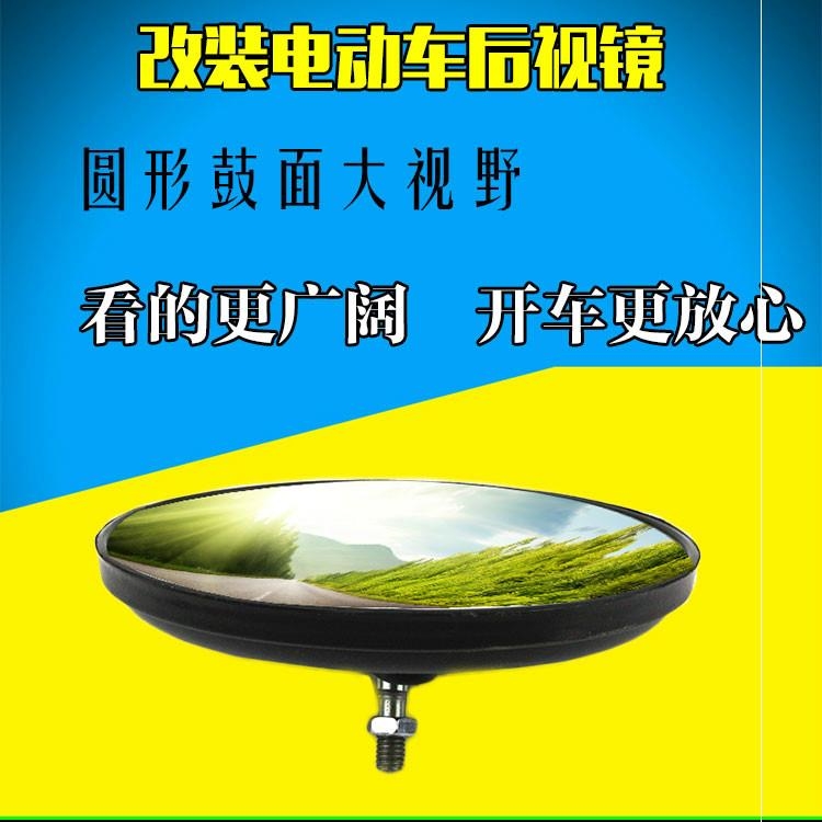 电瓶车后视镜小圆镜电动通用摩托车三轮车凸面镜带棚改装 倒车镜子