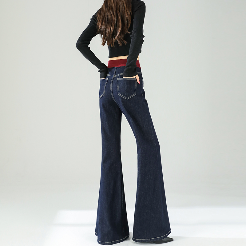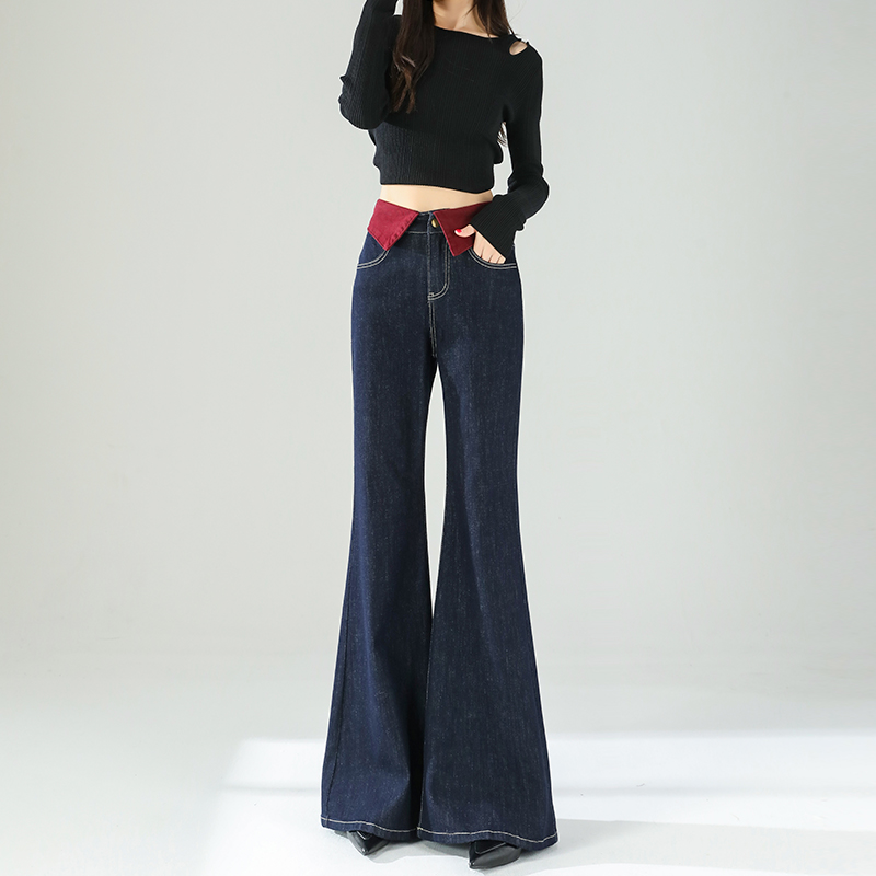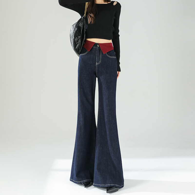 175超长高腰宽松显瘦微喇牛仔裤 高个子加长弯刀阔腿牛仔裤 女大码