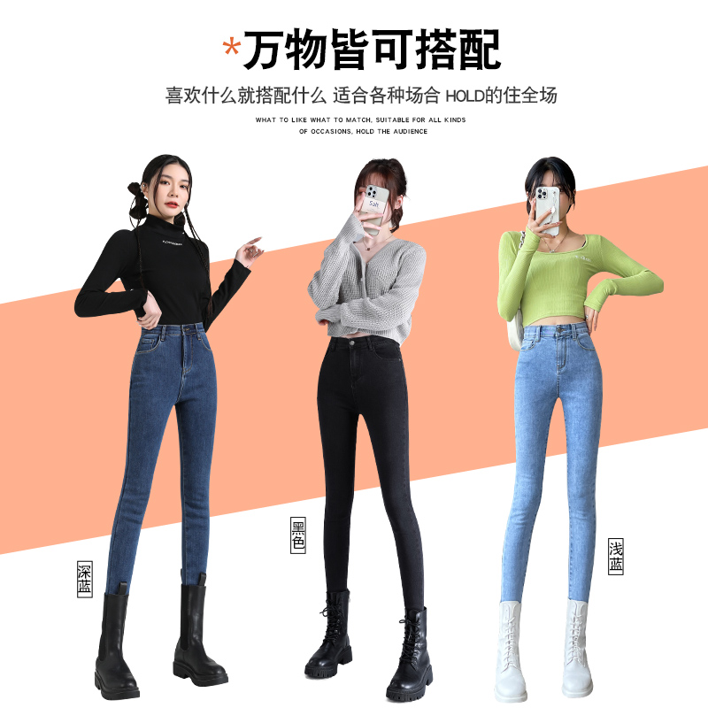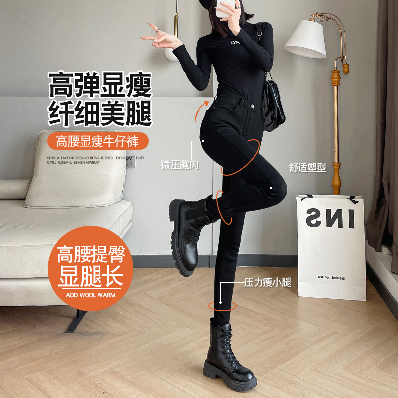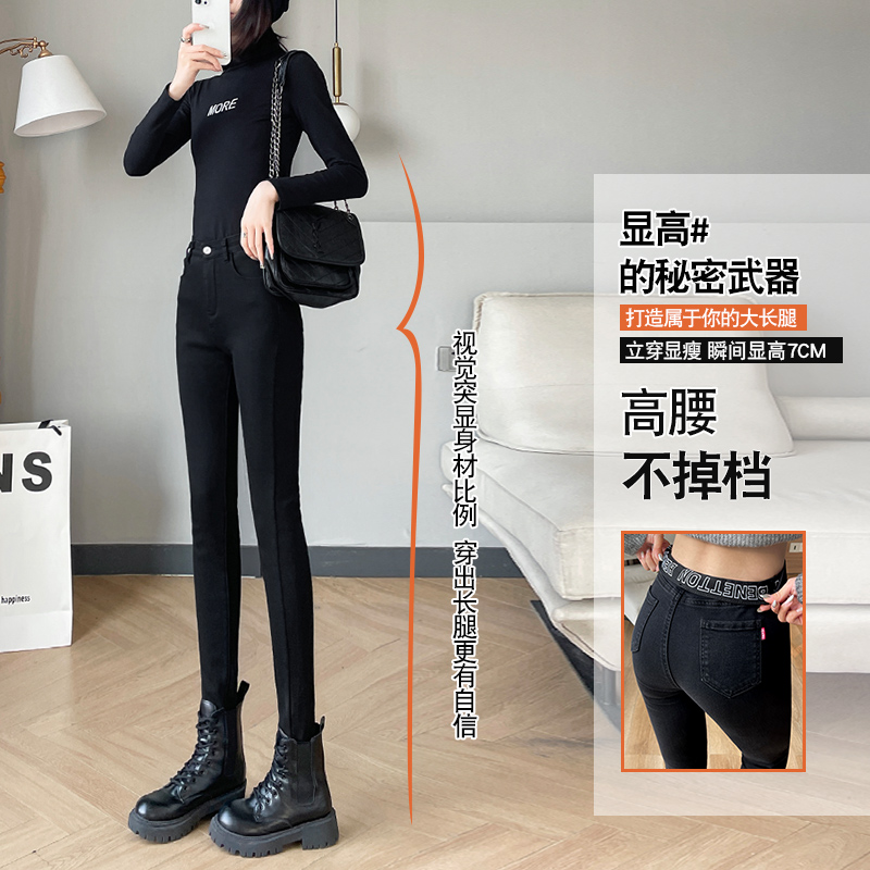 弹力铅笔黑色小脚裤 紧身牛仔裤 高腰显瘦修身 春秋款 子 女2025年新款