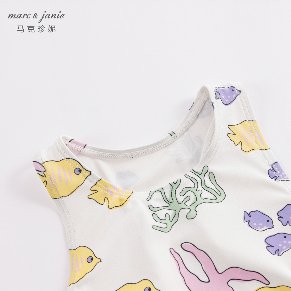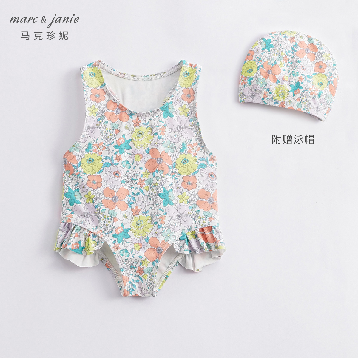 新款 马克珍妮夏装 女童弹力泳衣泳帽连体游泳衣 凉感防晒