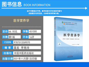 医学营养学全国中医药行业高等教育十四五规划教材聂宏李艳玲主编中国中医药出版 社9787513269070供针灸推拿学等专业用