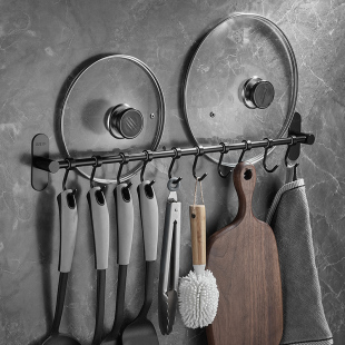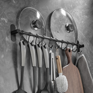 厨房挂钩架免打孔304不锈钢 厨具挂杆挂架勺子铲子排钩壁挂置物架