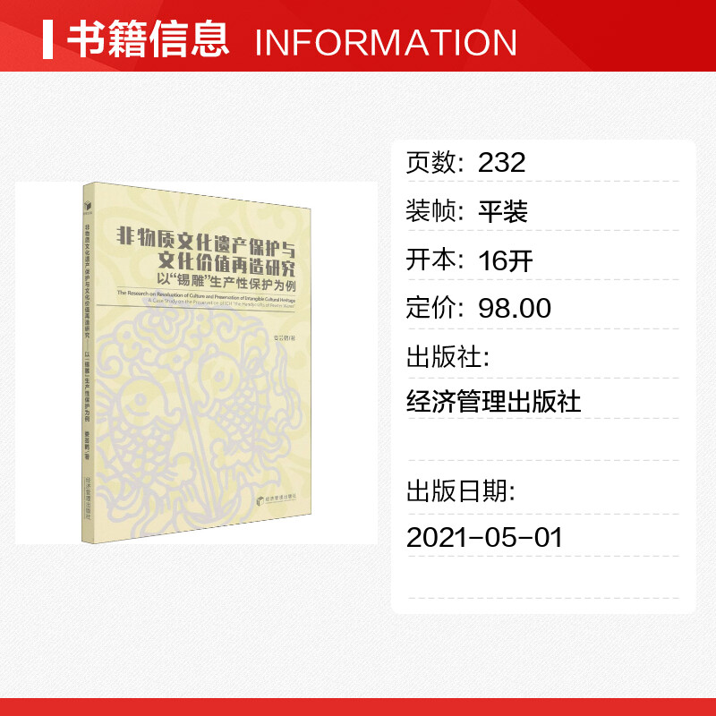 生产性保护为例 娄芸鹤 书籍 以 新华书店旗舰店文轩官网 正版 锡雕 社 非物质文化遗产保护与文化价值再造研究 经济管理出版