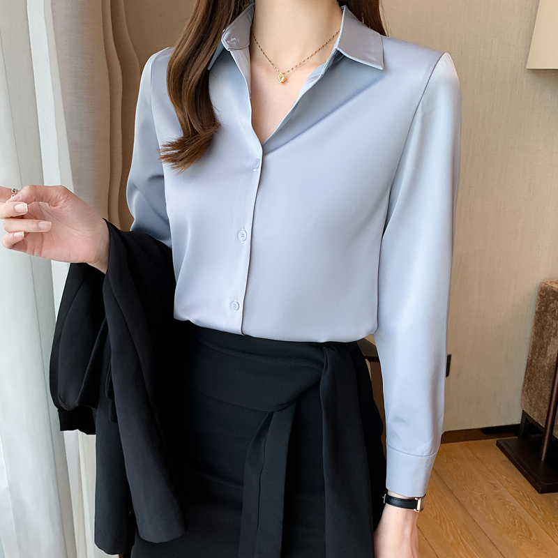 班尼路S&K系列蓝色冰丝抗皱衬衫 防晒宽松衬衣女士免烫上衣Q 女夏季