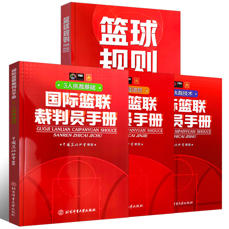 北京体育 正版 个人执裁3人执裁基础进阶 篮球规则2020国际篮联裁判员手册 篮球裁判员手册篮球规则解释教学训练教材教程书 全套4册