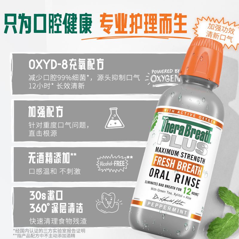 TheraBreath凯斯博士Plus漱口水升级瓶装 清新持久留香口臭