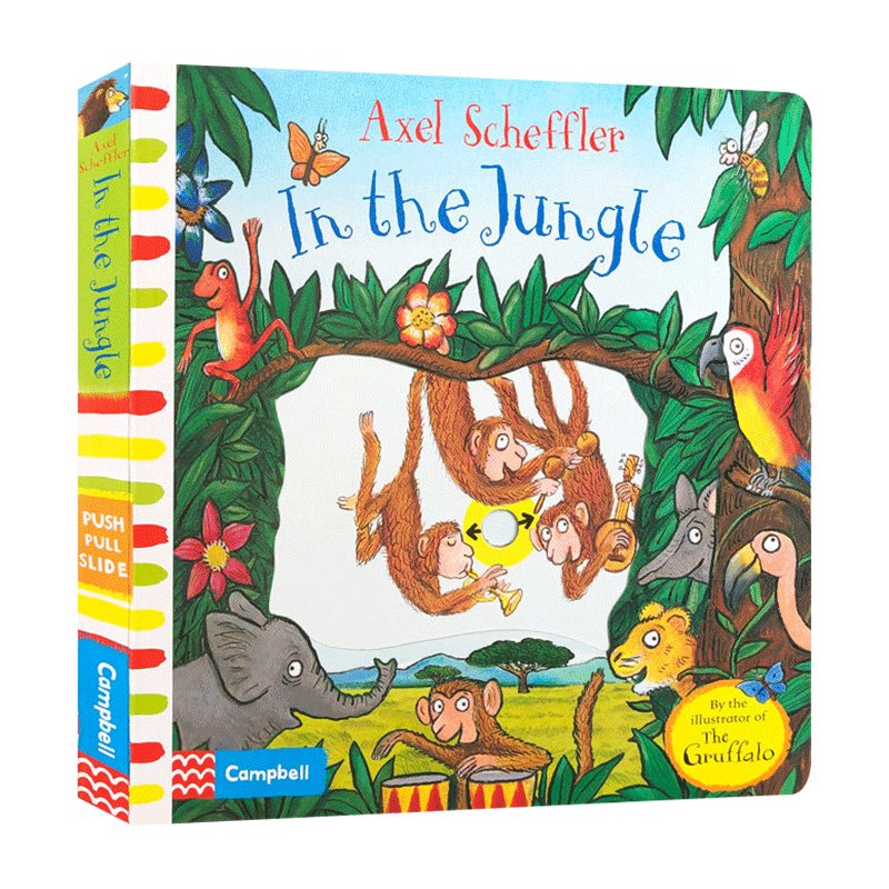 the Jungle 波西和皮普纸板推拉书 儿童读物 Scheffler 英文原版 进口英语启蒙书籍 Axel
