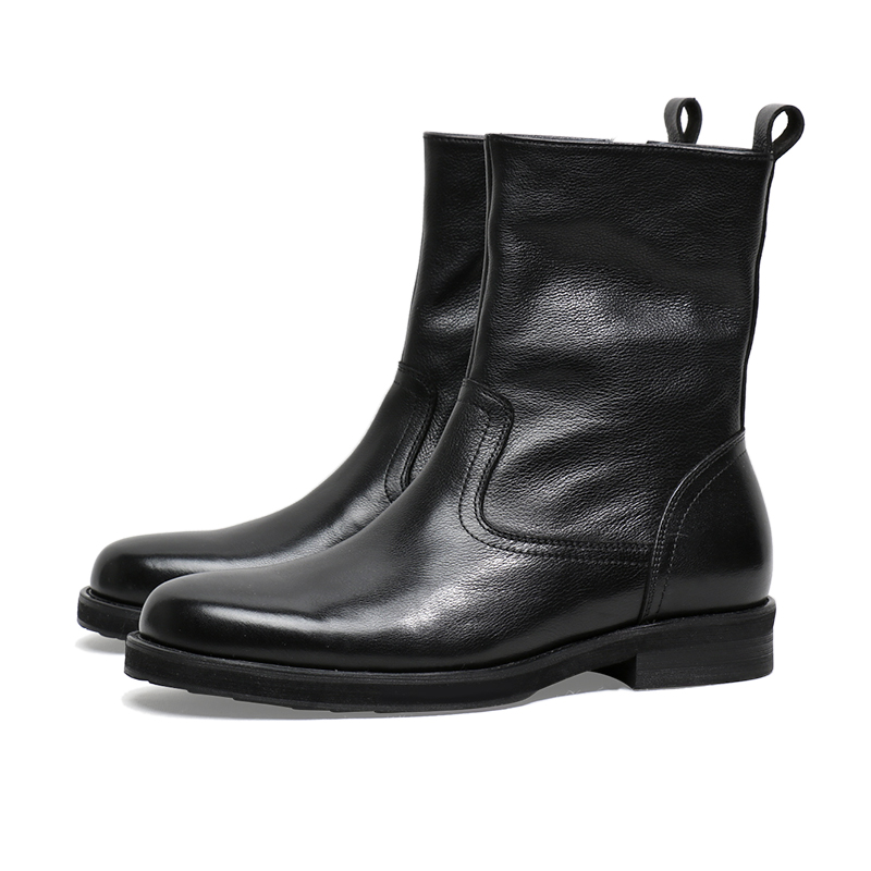 圣尼约德英伦风软真皮皮鞋 高帮拉链靴厚底切尔西机车牛仔马丁靴