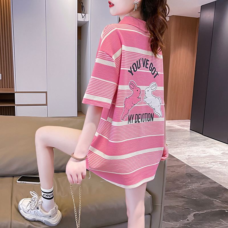 大码 t恤女2025夏季 胖mm洋气独特别致200斤上衣 短袖 卡通印花Polo衫