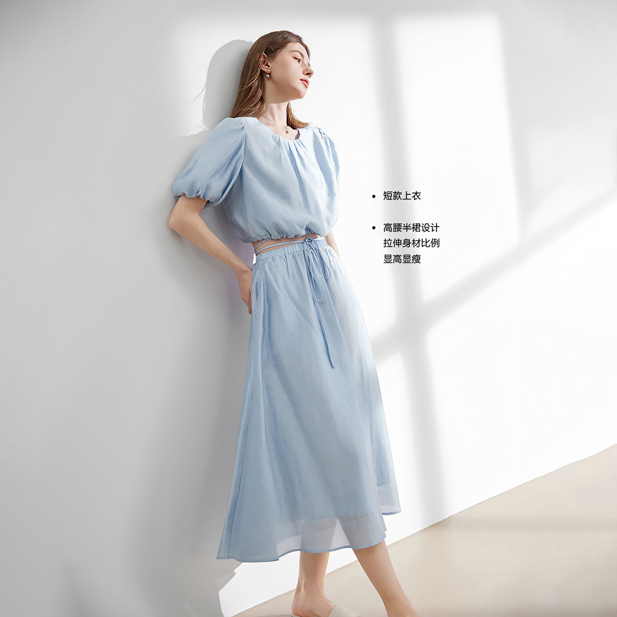 雪纺衫 MEETLADY法式 短袖 女2025夏新款 高级感两件套女 优雅半裙套装