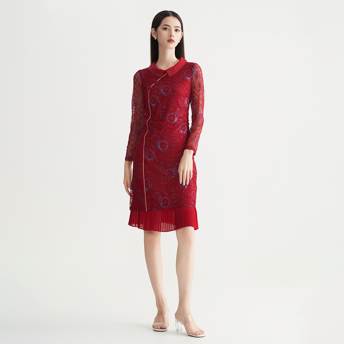 提花复古重工收腰显瘦连衣裙女 LULUALWAY25春秋新款 商场同款
