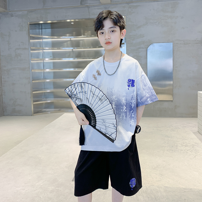 薄款 汉服短袖 中式 男童夏季 唐装 2025新款 古风儿童洋气夏装 国潮 套装