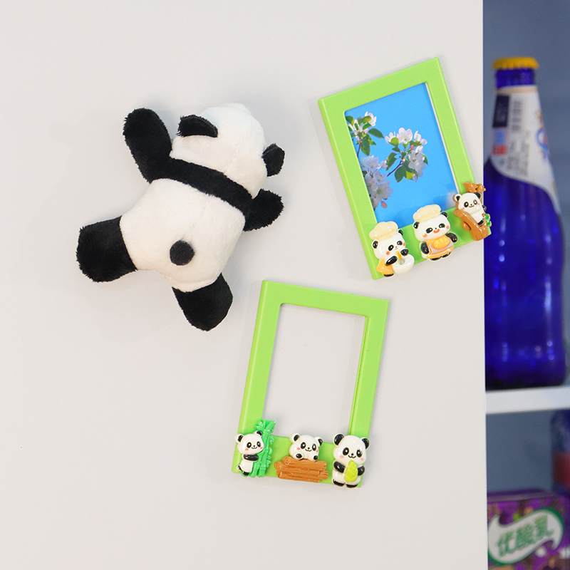 创意熊猫相框冰箱贴艺术装 饰画框创意礼物磁贴3寸拍立得磁吸相架