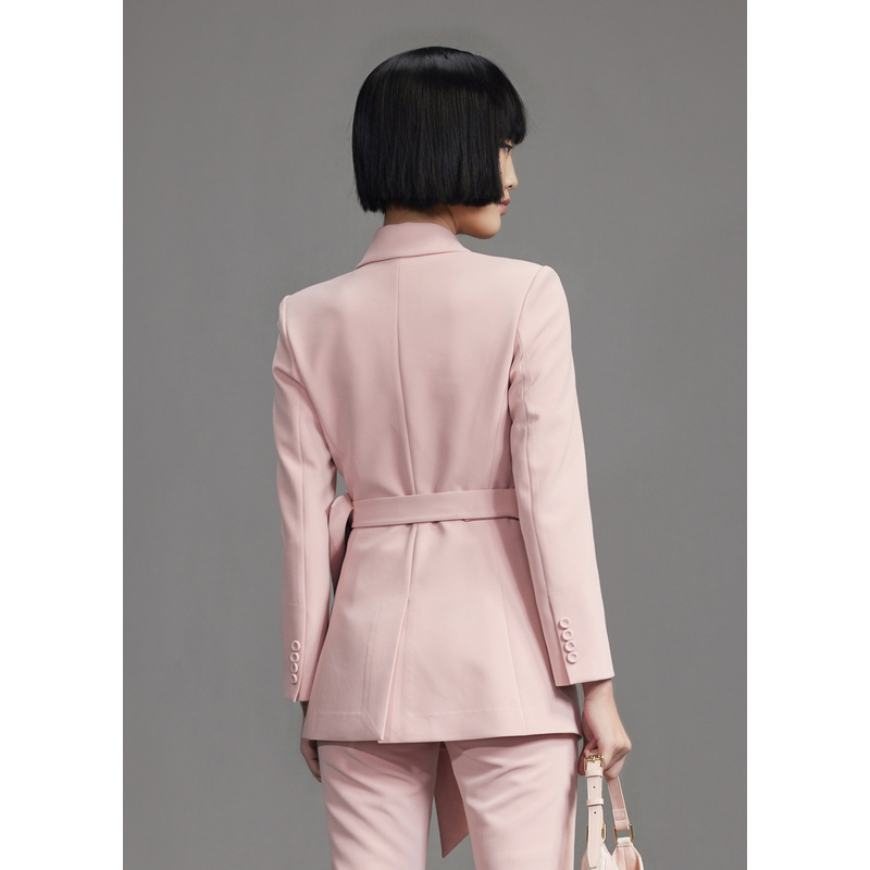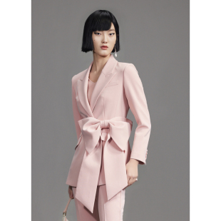 COCOBELLA高智感拼接人丝无领西装 女早秋通勤休闲气质外套SI533B
