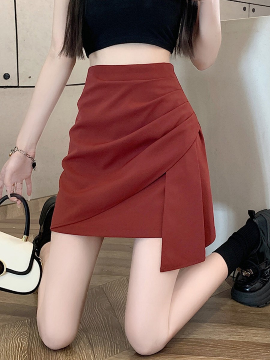 短裙 褶皱小众包臀裙高腰垂感a字西装 时尚 不规则半身裙女2025夏季
