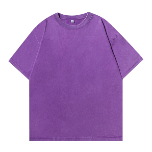 纯色休闲风体恤男女落肩款 新款 T恤夏季 240g重磅纯棉水洗做旧短袖