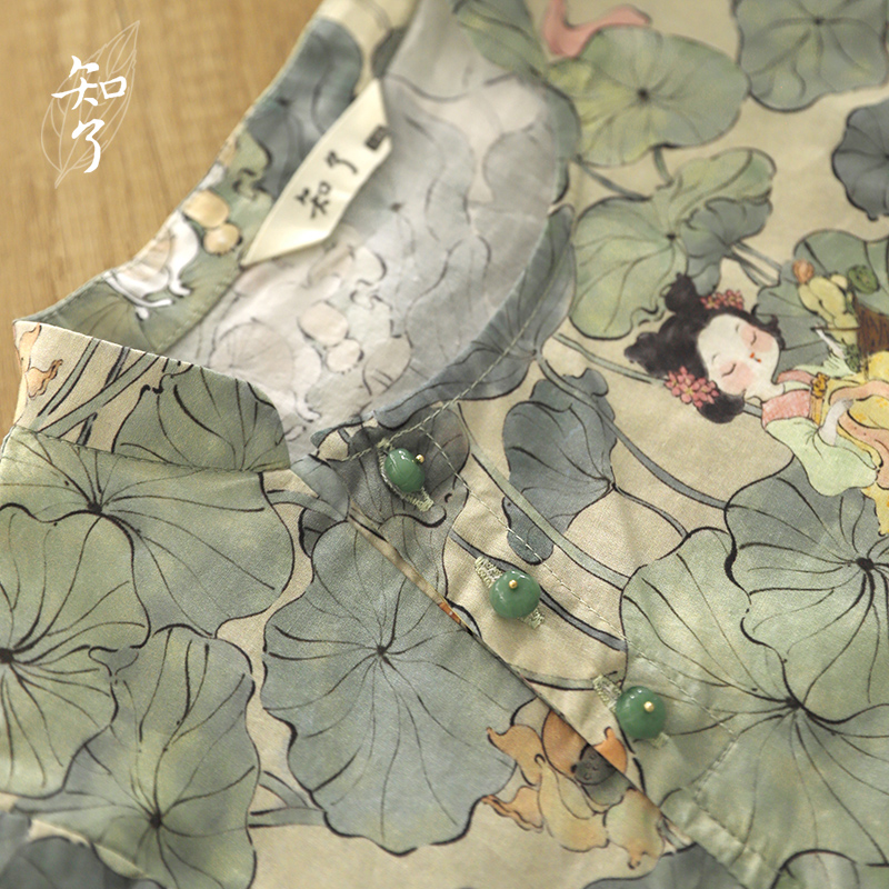 全棉七分袖 文艺女童早秋印花衬衫 上衣儿童55125 新中式 知了童装