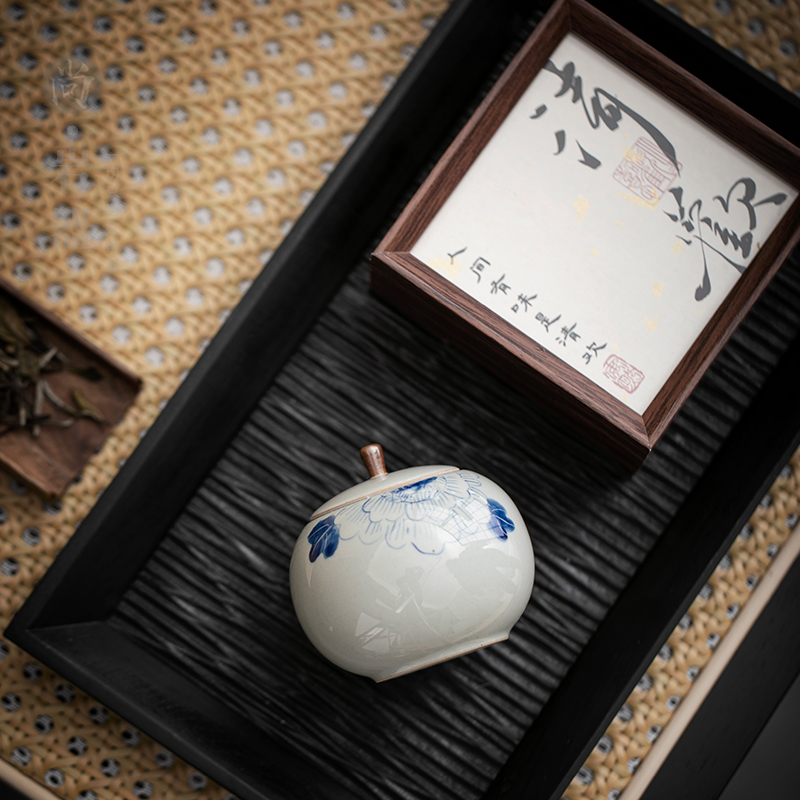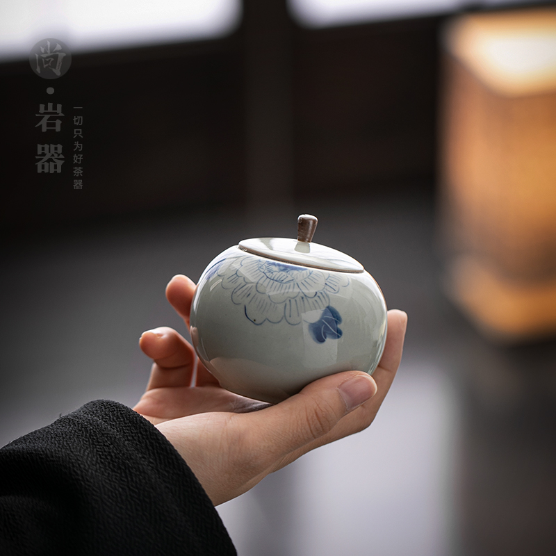 尚岩纯手绘牡丹茶叶罐密封罐陶瓷高档便携小号创意防潮迷你储物罐