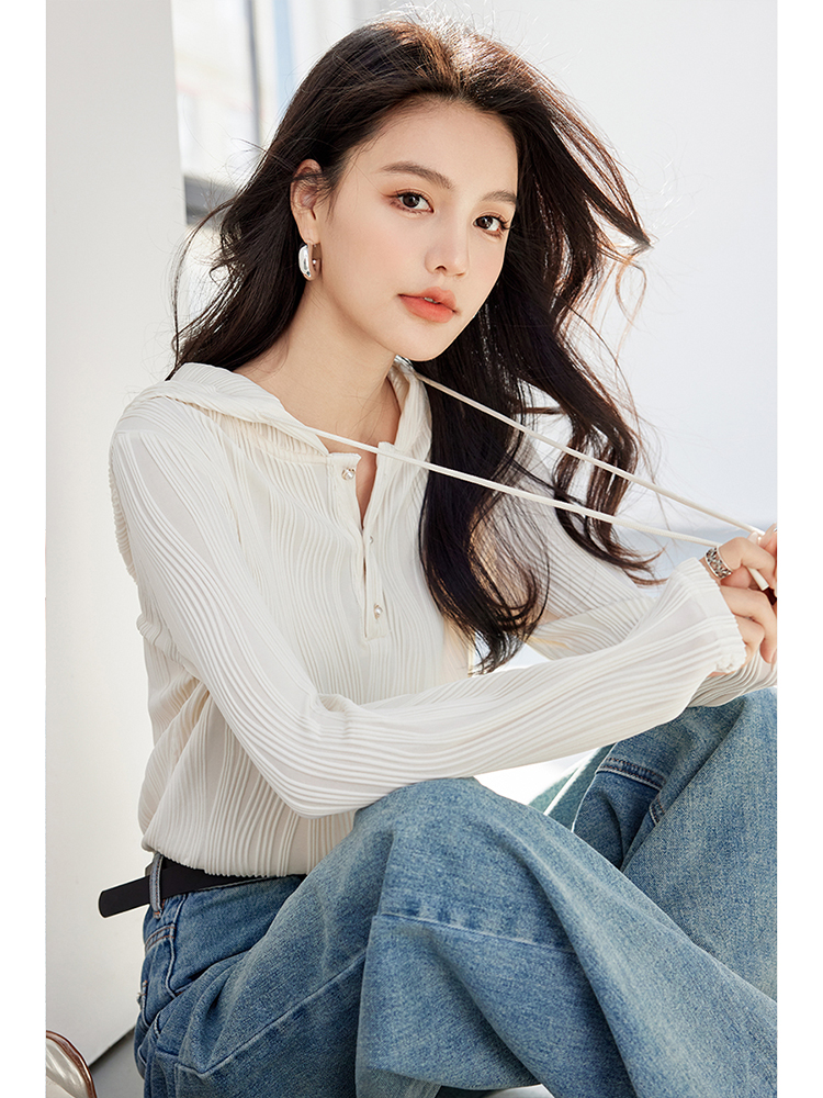 时尚 新款 设计感气质舒适轻薄T恤女 上衣2025年春季 肌理感连帽长袖