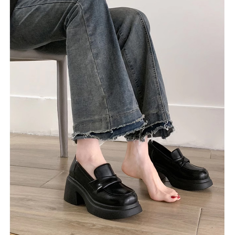 仙女风瓢鞋 秋季 浅口百搭中跟奶奶鞋 大码 真皮单鞋 女鞋 粗跟2025新款