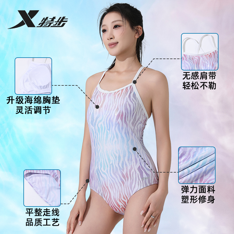 李宁泳衣女2025新款 女士连体游泳衣女孩专业游泳馆专用温泉泳装