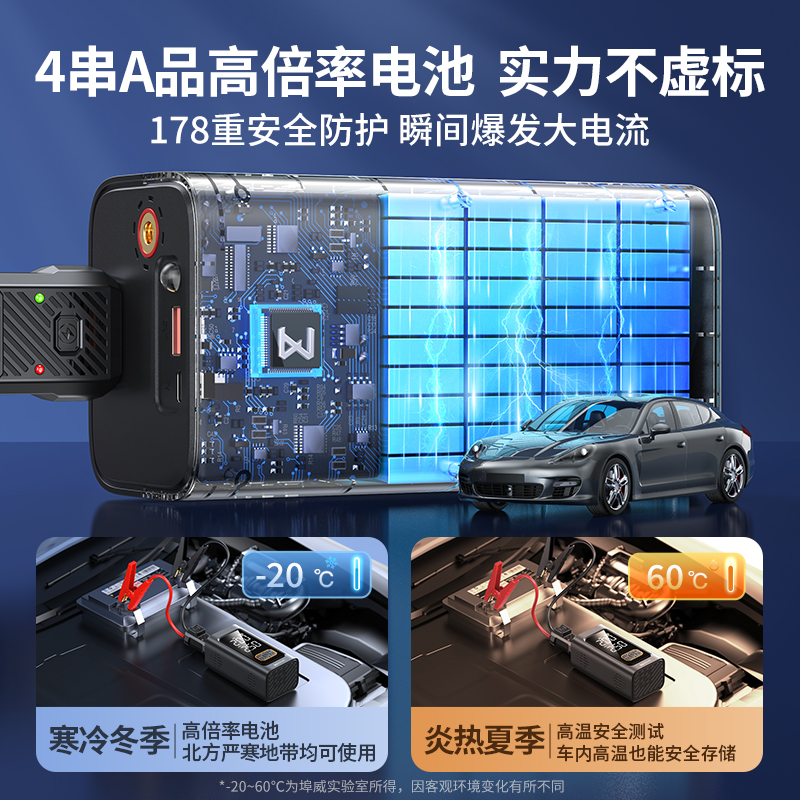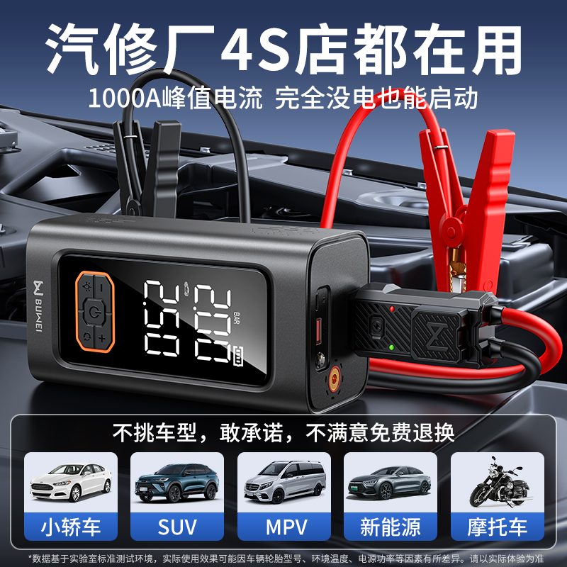 埠威汽车紧应急启动电源充气泵一体机车载电瓶搭电宝强启打火神器