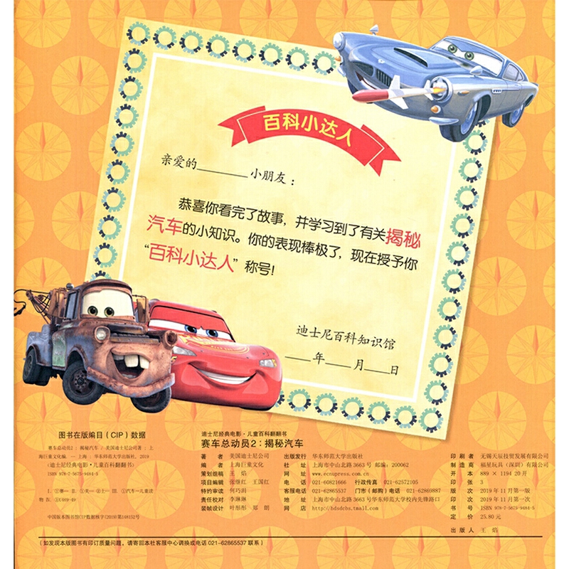 揭秘汽车 儿童百科翻翻书:赛车总动员2 迪士尼经典 电影