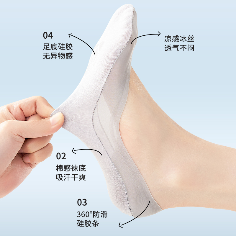 高跟鞋 袜子薄款 袜子 冰丝隐形袜棉制底防滑不掉跟浅口鞋 船袜女夏季