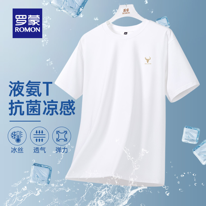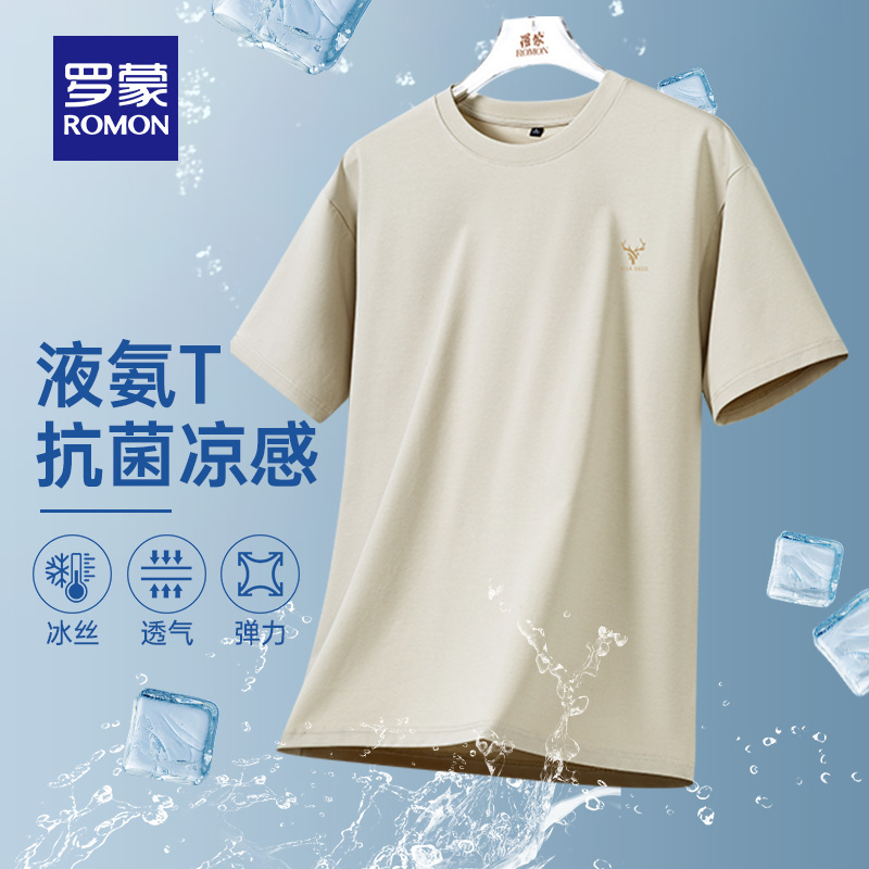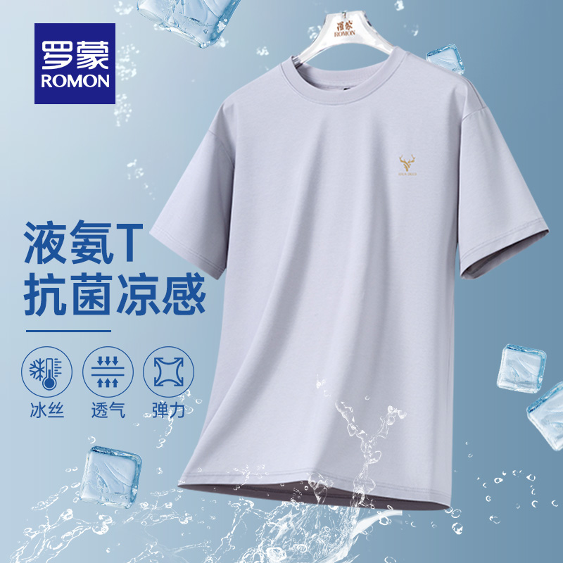 罗蒙男士 7A抗菌 凉感短袖 T恤2025夏季 透气圆领上衣 薄款 含天丝