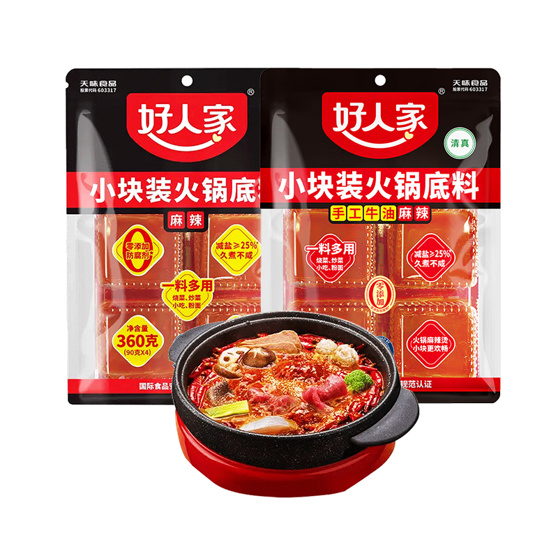 好人家牛油火锅底料200g 火锅底料四川串串底料 360g一人份小块装