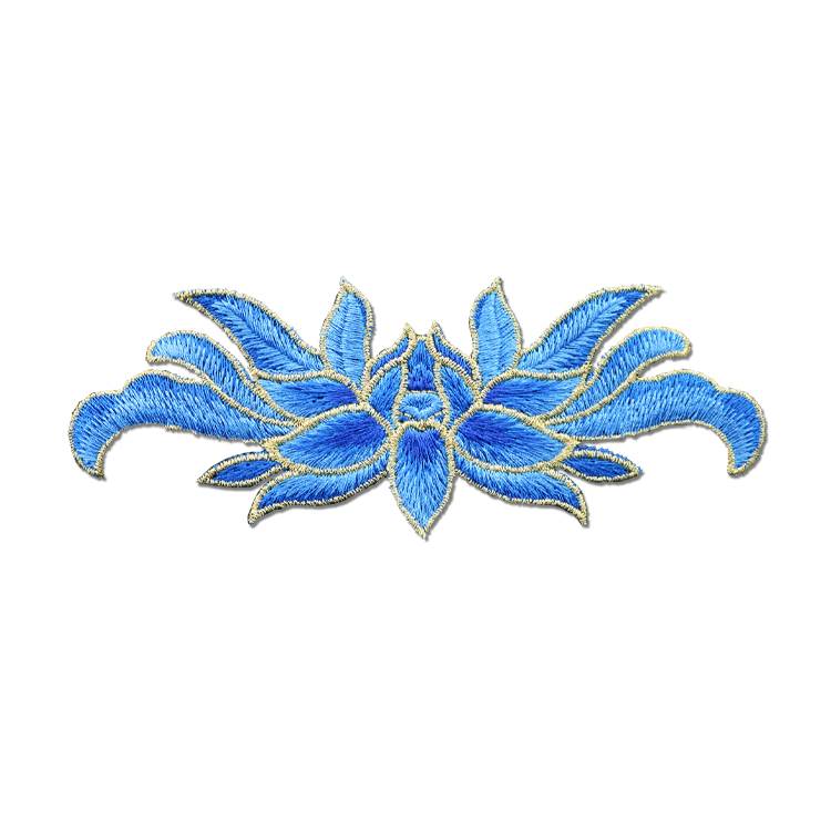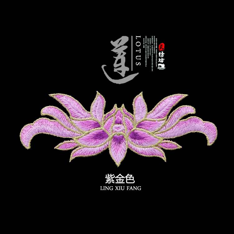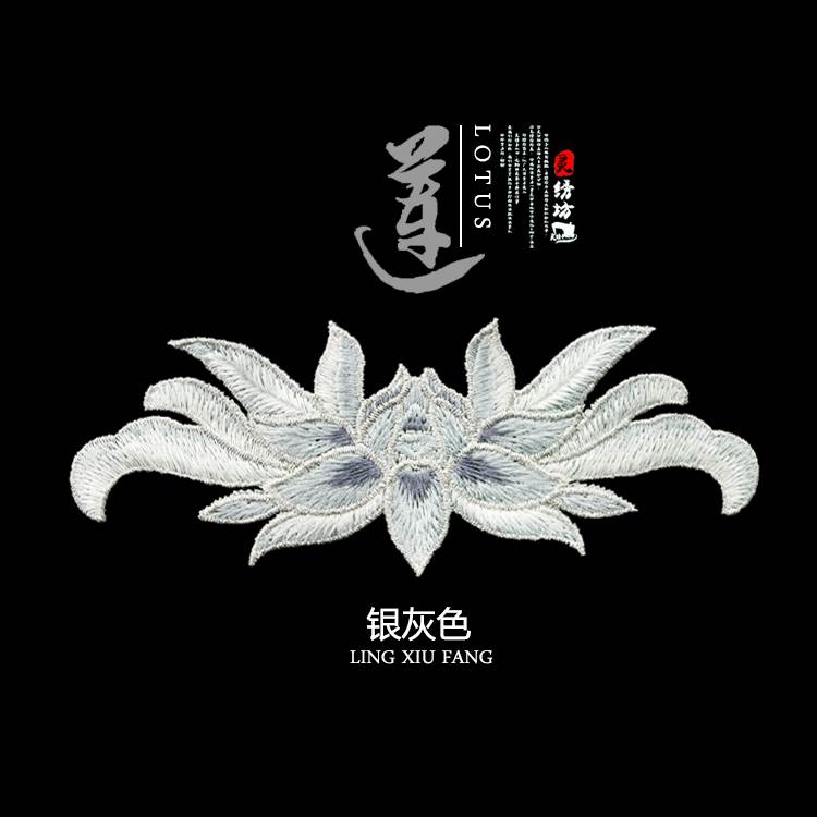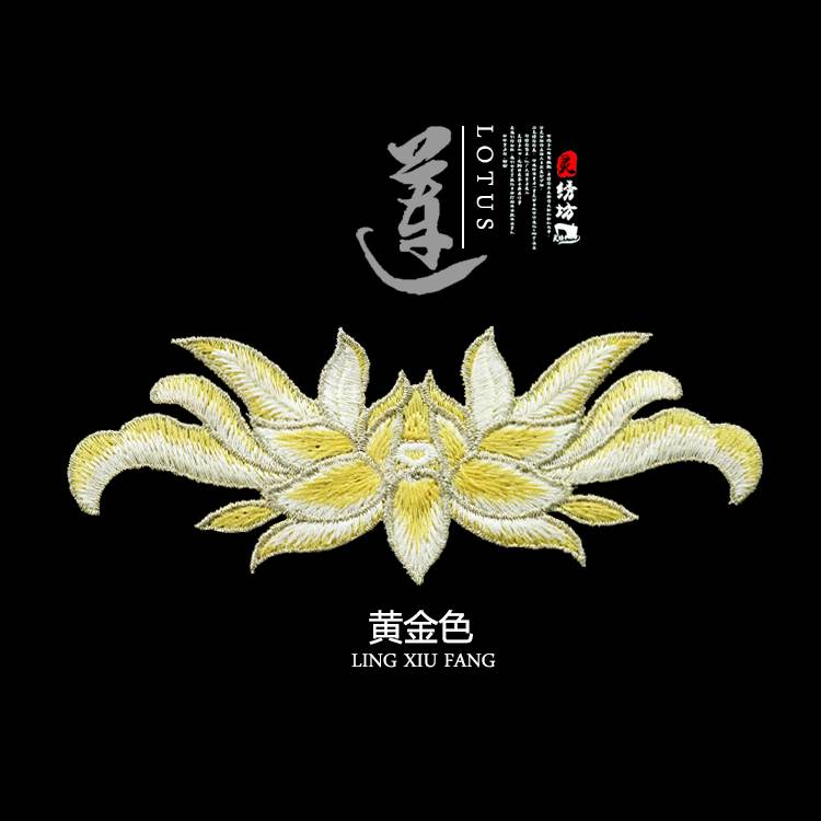 时尚 饰破洞补丁贴花 中国风布贴金银丝线荷花莲花刺绣贴布包衣服装