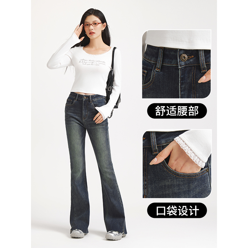 2025年秋季 显瘦牛仔长裤 新款 修身 女士复古喇叭牛仔裤 热风微喇裤