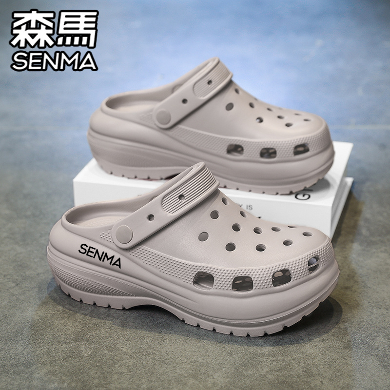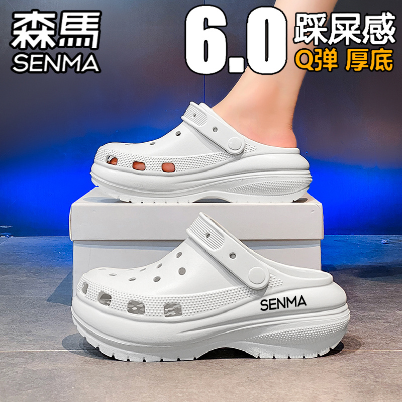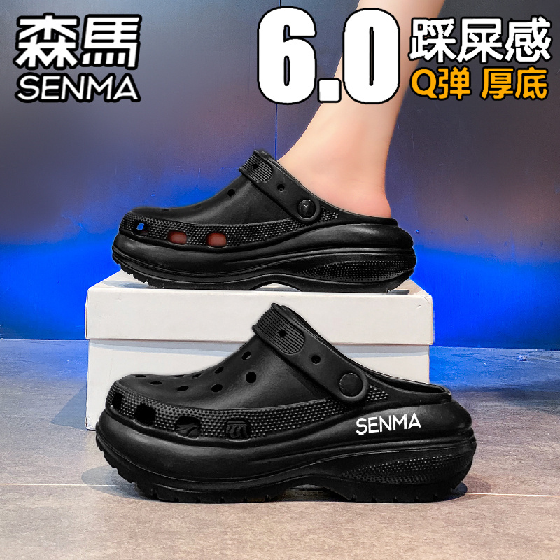 防滑防臭运动两用沙滩凉鞋 外穿厚底增高包头拖鞋 女夏季 森马洞洞鞋