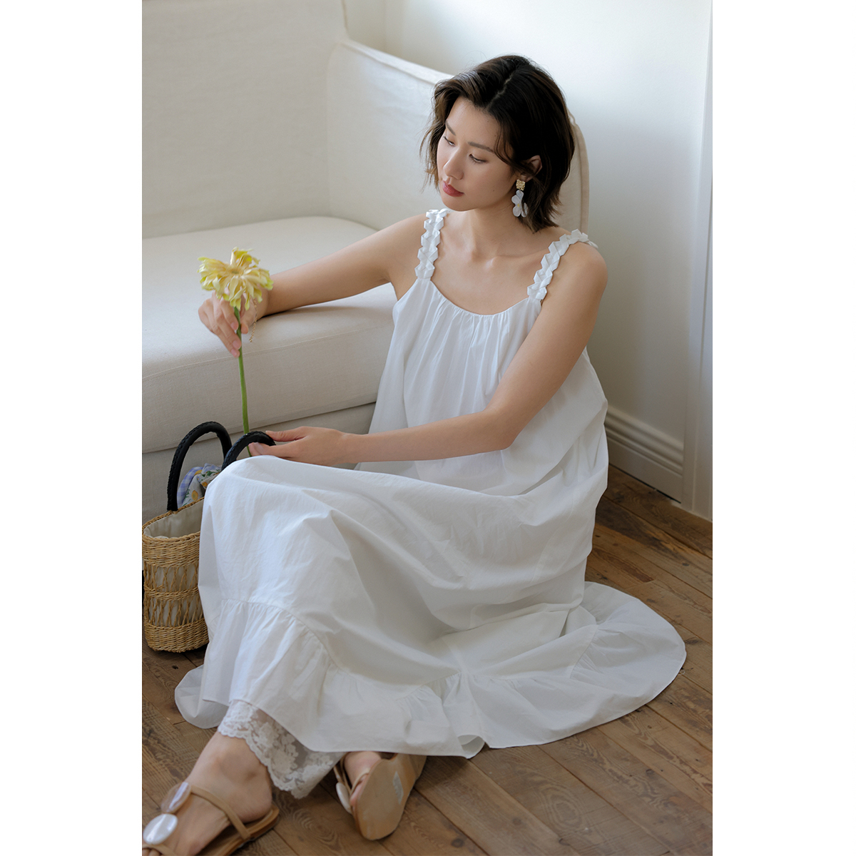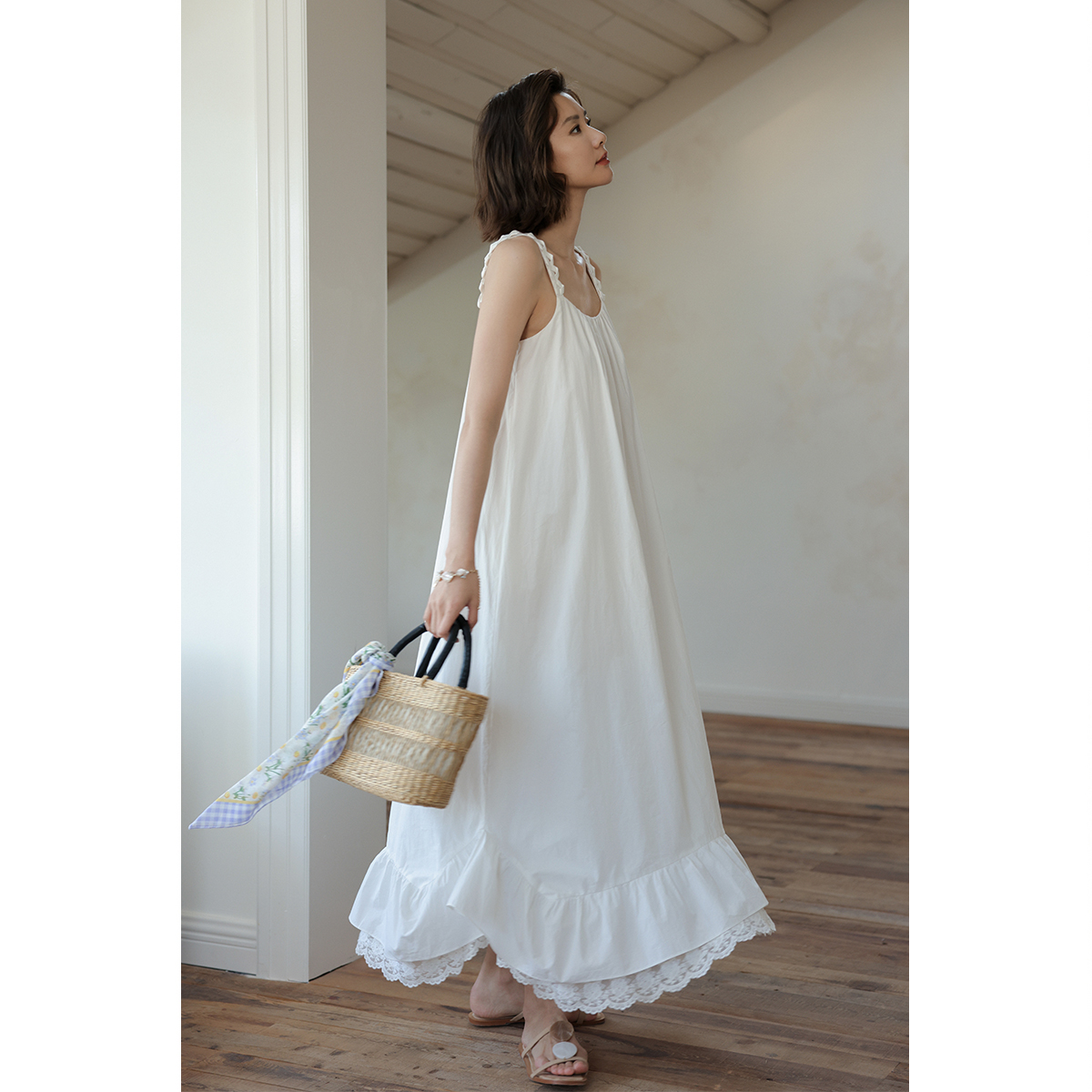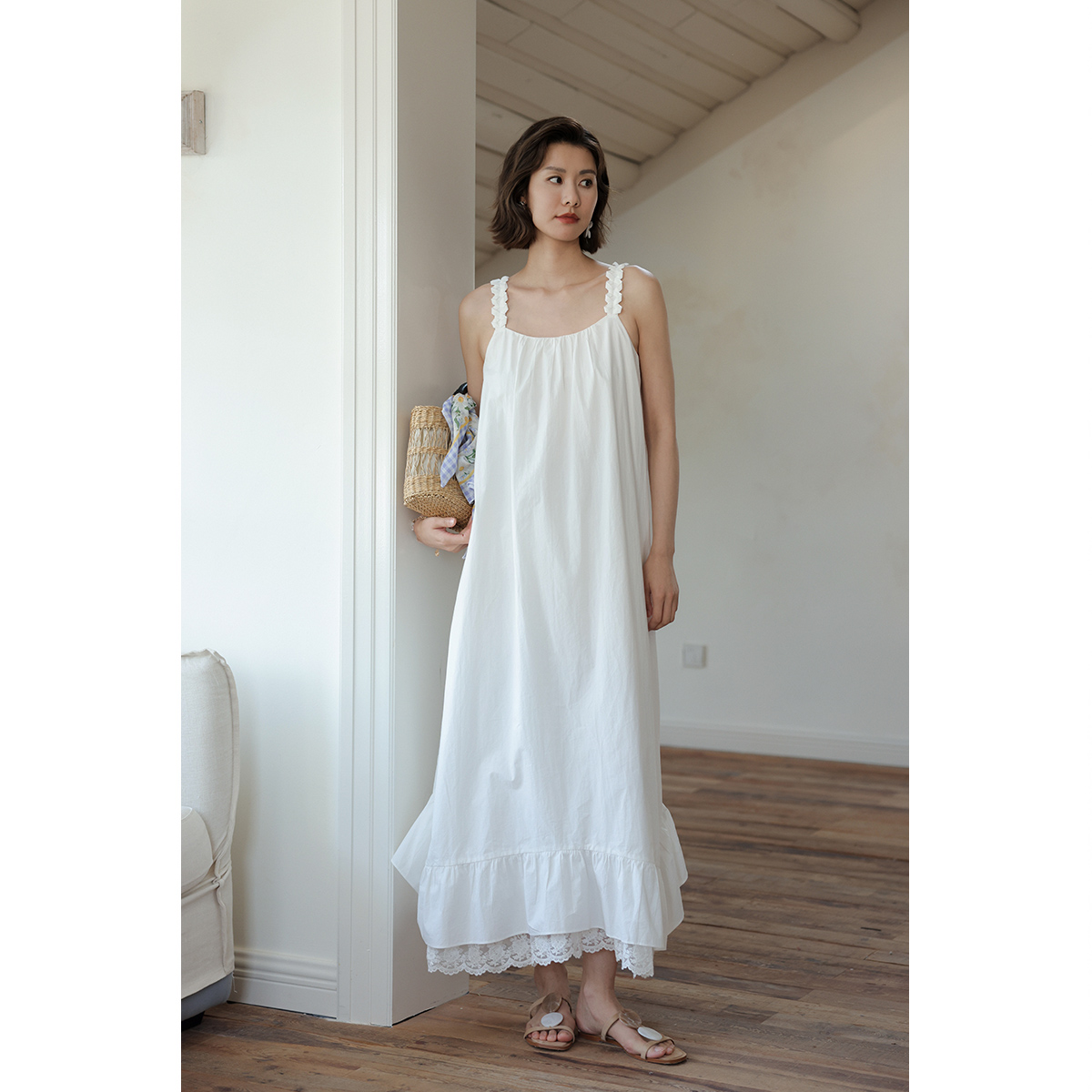 弥古白色吊带蕾丝连衣裙女2025夏季 宽肩带海边度假裙子 高级感法式